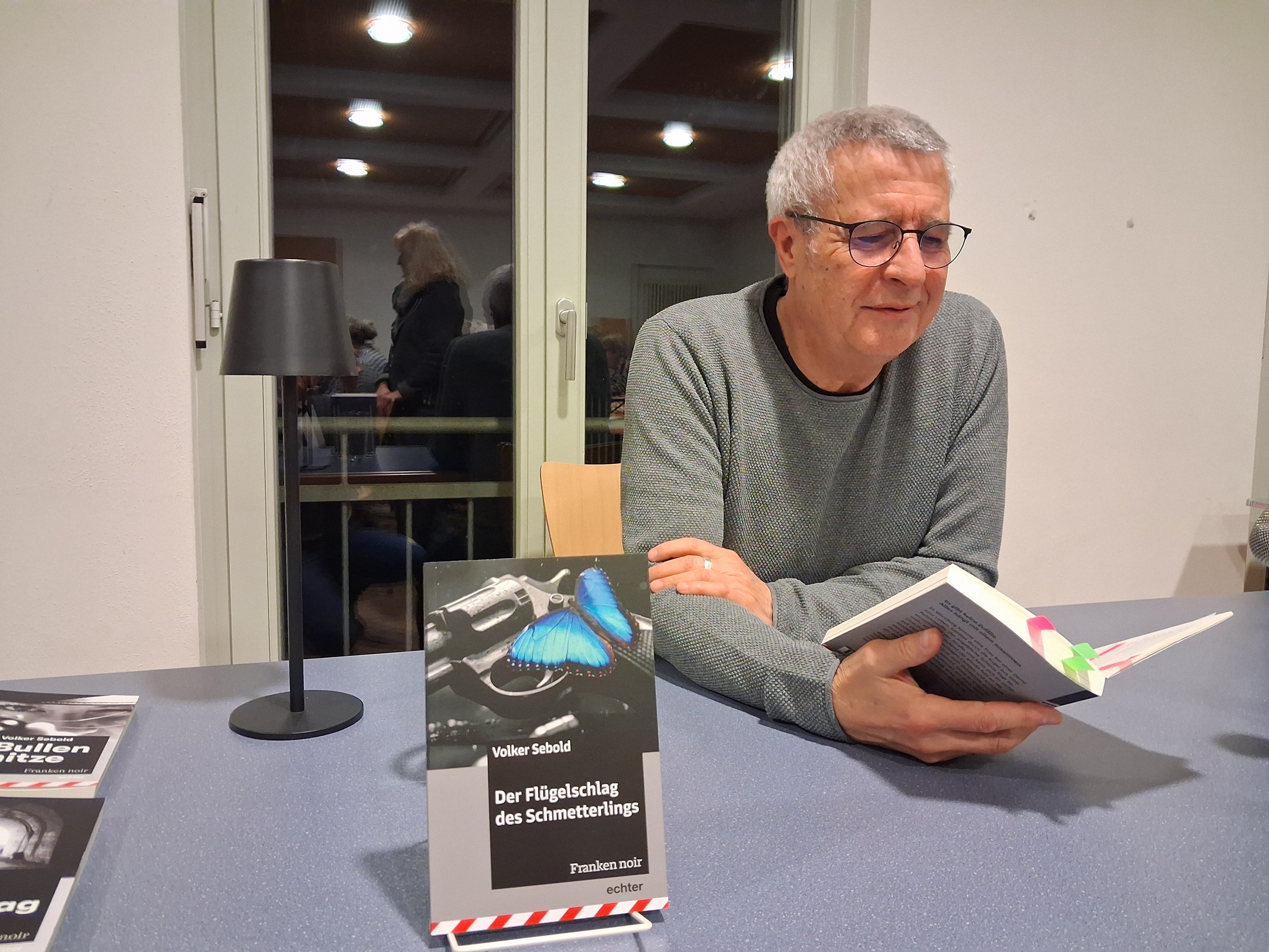 Sebold, der bereits die Krimis „Bullenhitze“ (2020) und „Am Anschlag“ (2022) verfasst hat, stellte diese kurz vor, bevor er mit der Lesung begann. Er zeigte sich als charmanter Erzähler, was das positive Feedback der Teilnehmer:innen bestätigte: „Das Publikum war sehr aufmerksam – man hat das große Interesse daran erkannt, wie gespannt alle den Passagen gefolgt sind. Der Abend hat mir sehr viel Freude bereitet“, so Sebold. Die Mischung aus lokaler Atmosphäre – seine Geschichten spielen in der Region – und den teilweise amüsanten, ortsbezogenen Beschreibungen sorgte dafür, dass der Abend trotz krimineller Handlungen auch lustige und unterhaltsame Momente bot. Authentische Einblicke in die Arbeit eines Autors rundeten das Erlebnis ab. „Es ist immer wieder schön zu sehen, wie Literatur Menschen zusammenbringt“, so Sebold.